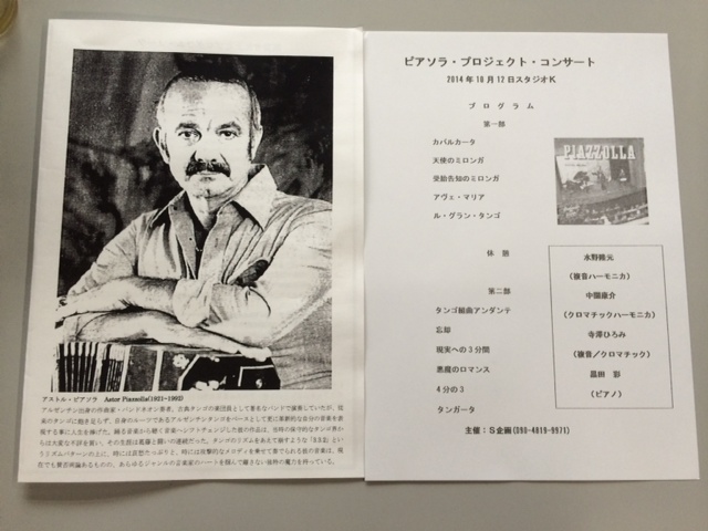 あっという間の2時間でした。素晴らしい演奏を本当にありがとうございました。そしてやっぱりピアソラは最高です!!!ハーモニカのピアソラ、また聴いてみたいなあ・・・